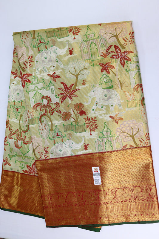 Weavers PriceGraceful Green With Yellow Kanchipuram Silk Saree
