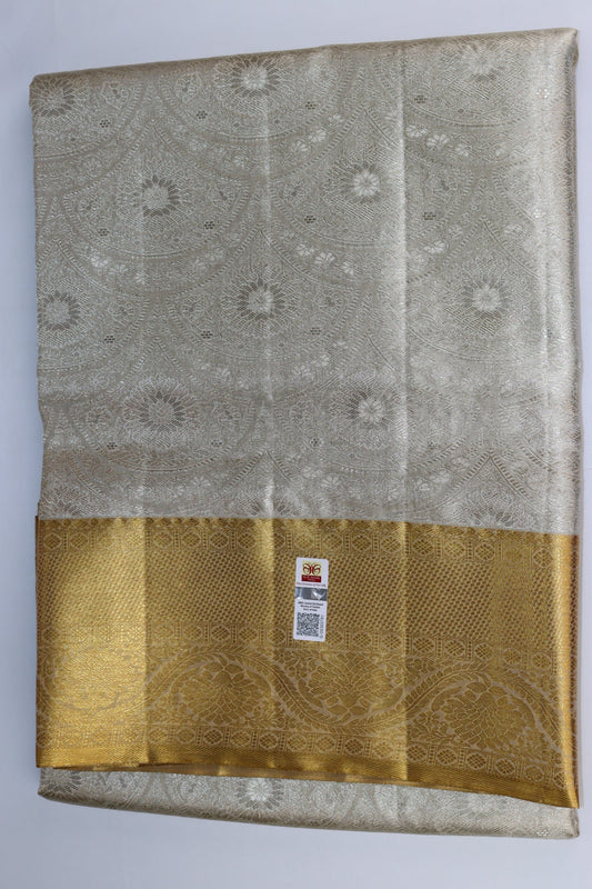 Weavers PriceTraditional Pastel Silver Pure Kanjipuram Saree